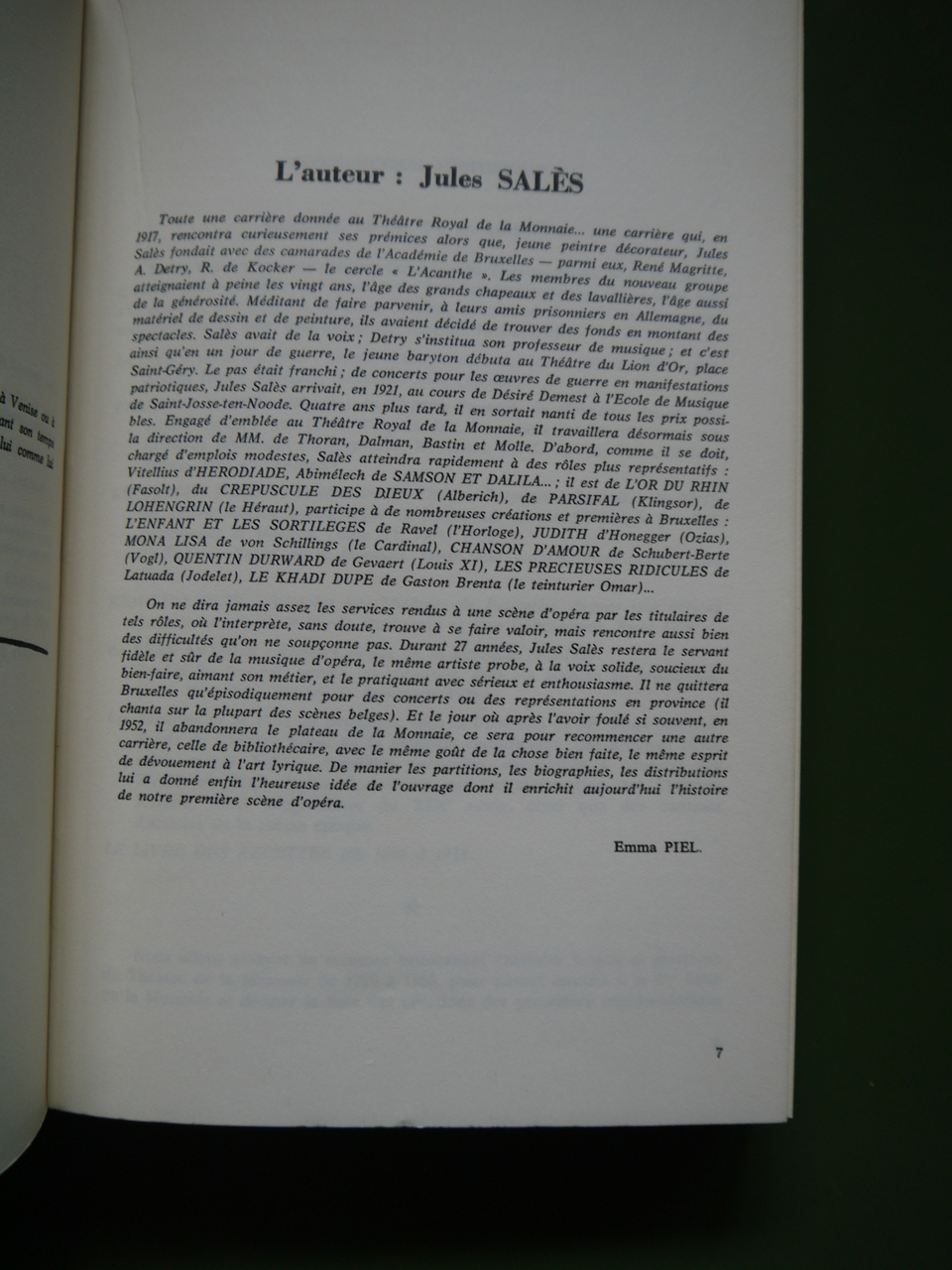 Théâtre royal de la Monnaie 1856-1970, Jules Salès, editions Havaux, 1971
