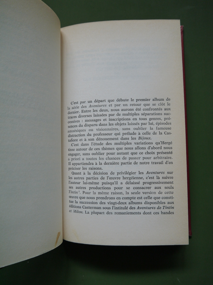 « Essai sur la création graphique et la mise en scène de ses enjeux dans l’oeuvre d’Hergé ».