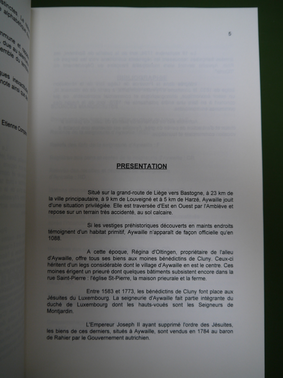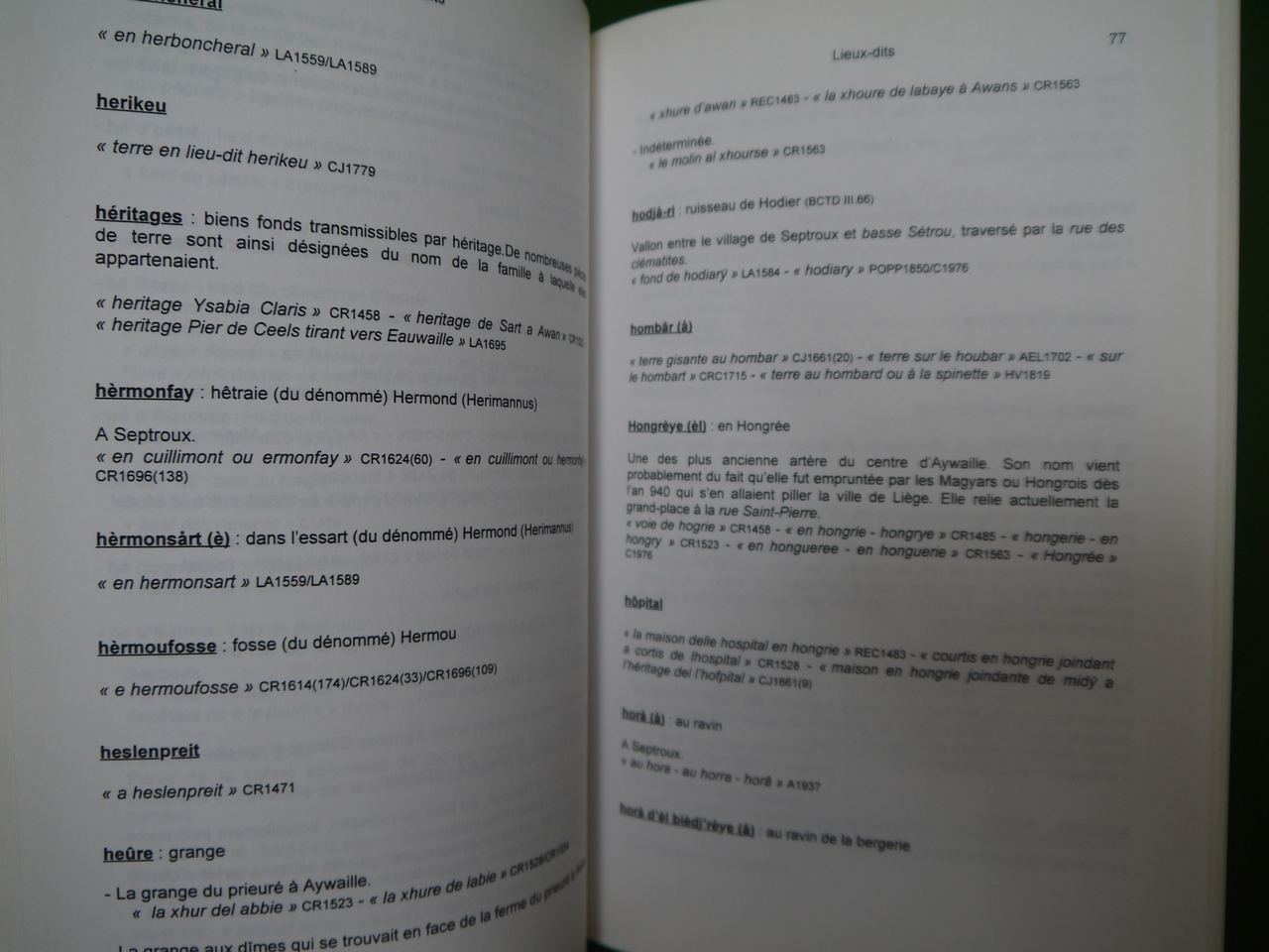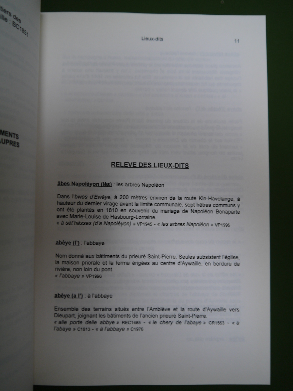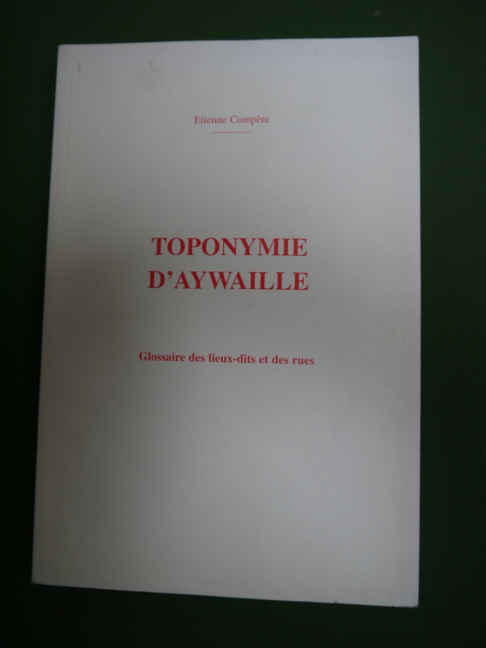 Aywaille serait-elle la seule ville de Belgique à avoir ses deux « Toponymie »? Les experts départageront entre celle-ci, signée Compère et sous-titrée « Glossaire des lieux-dits et rues », et celle-là, signé Hardy et Offermanne.