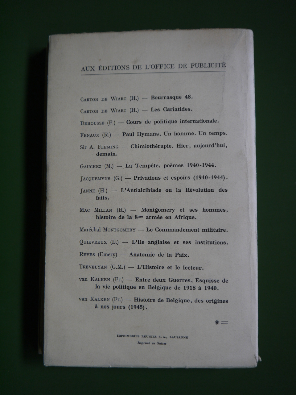 Au départ de l’Oflag 2A, tentations et tentatives d’évasions… L’auteur était Général-Major dans l’armée belge et fut durant de longues années Chef de la Maison des Princes de Liège, Albert et Paola. Ouvrage réédité dans les années 1960.