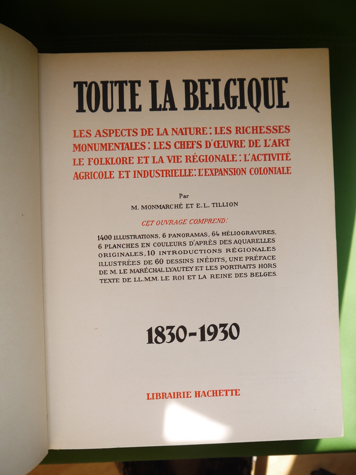 Toute la Belgique (1830-1930), M. Monmarché & E.L. Tillion, Hachette, 1929