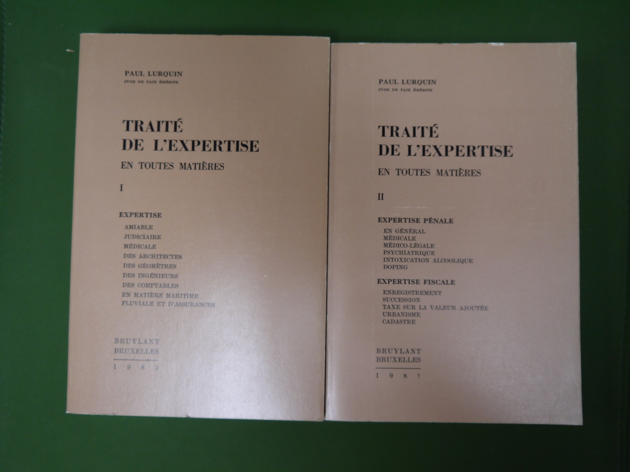 Tome 1 (479 p.): Expertises amiable, judiciaire, médicale, des architectes, des géomètres, des ingénieurs, des comptables, en matière maritime, fluviale et d’assurances. Tome 2 (390 p.): Expertise pénale en général, médicale, médico-légale, psychiatrique, intoxication alcoolique, doping – Expertise fiscale, enregistrement, succession, taxe sur la valeur ajoutée, urbanisme, cadastre.