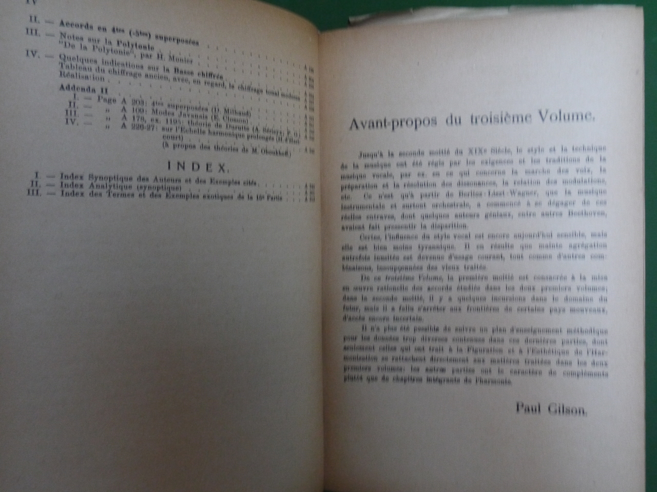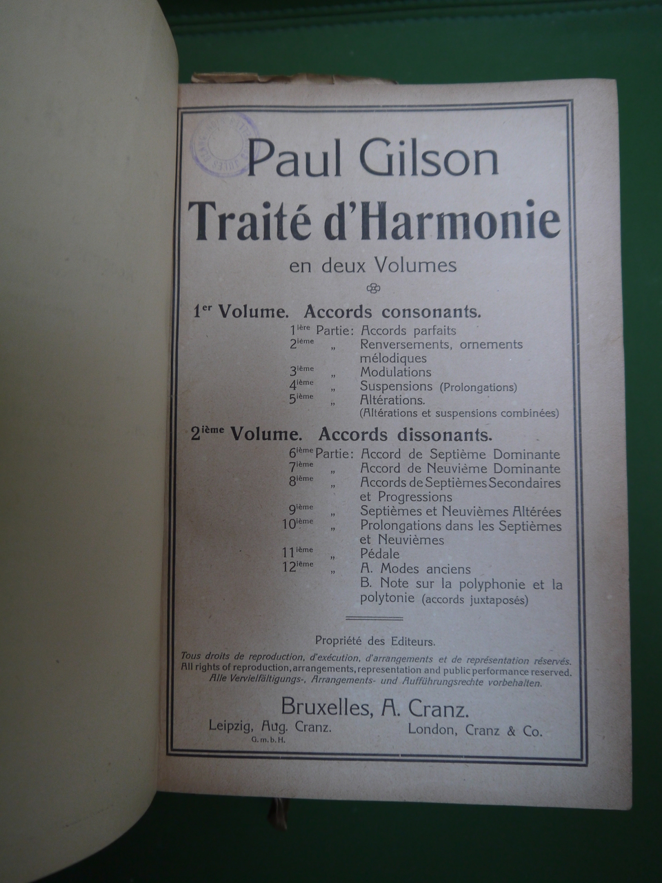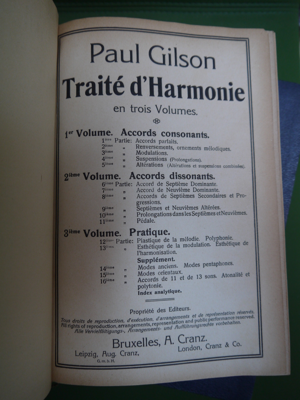 L’avant-propos du tome 1 est daté de 1919. La dédicace de l’éditeur dans le tome 3 est datée de 1926. Paul Gilson est un compositeur et pédagogue belge, né à Bruxelles en et mort dans cette ville en .