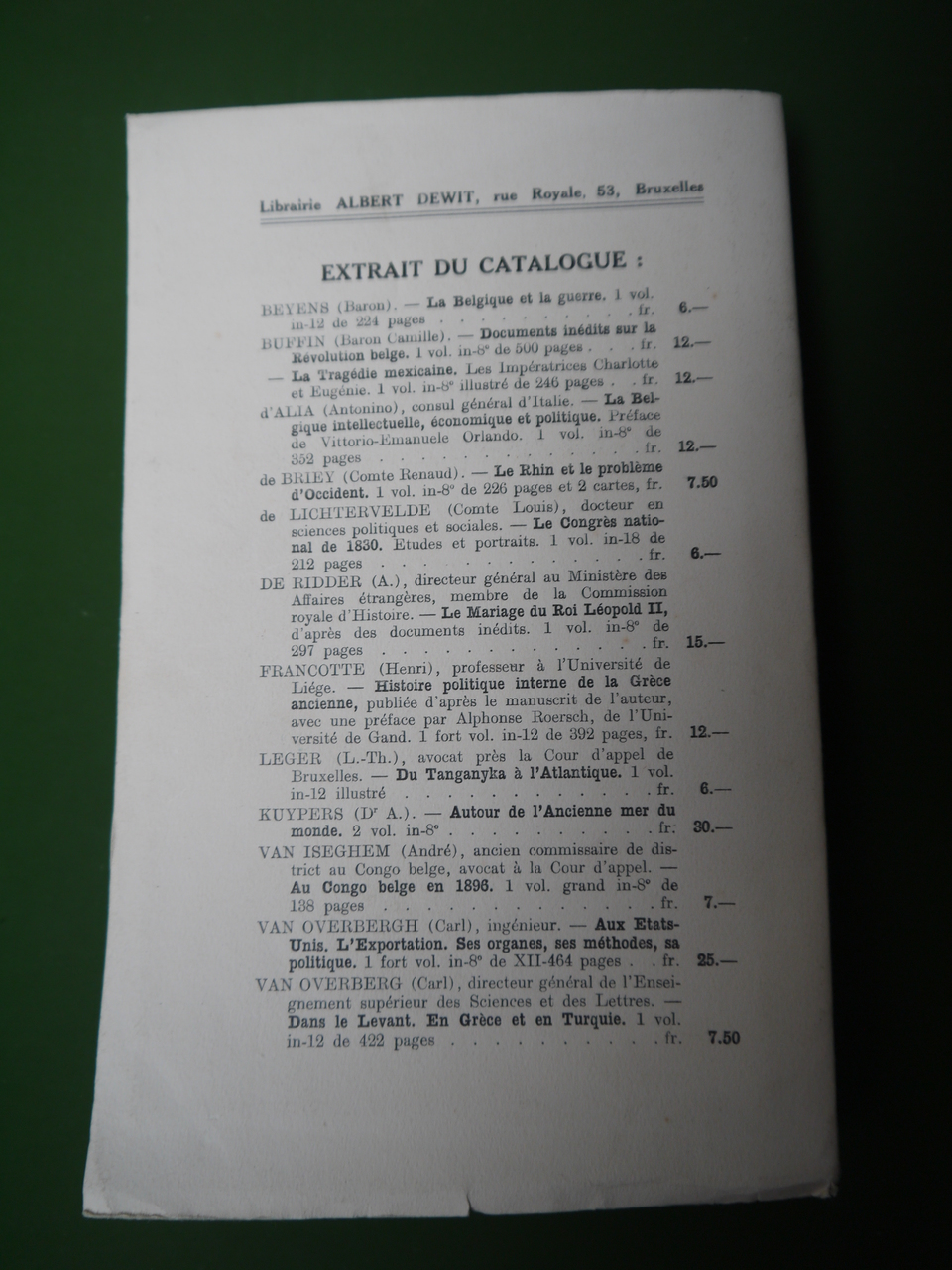 Compilation des articles de l’envoyé du quotidien « La Nation belge » au Congo. Plus de 700 pages! L’exemplaire proposé est relié.