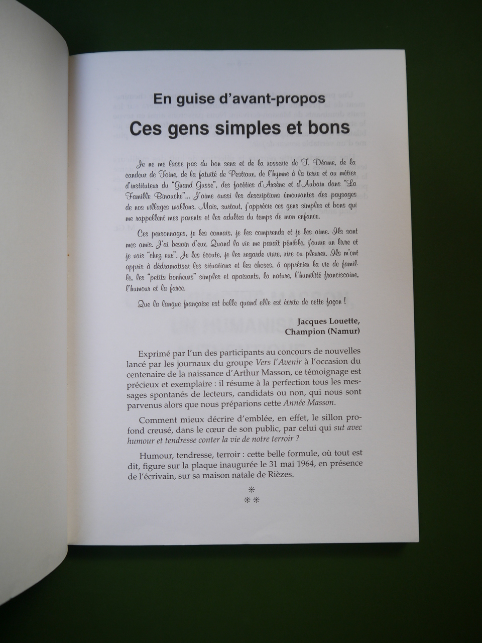 « Pastiches et hommages de lecteurs »… rassemblés à l’occasion du 100e anniversaire de la naissance d’Arthur Masson.