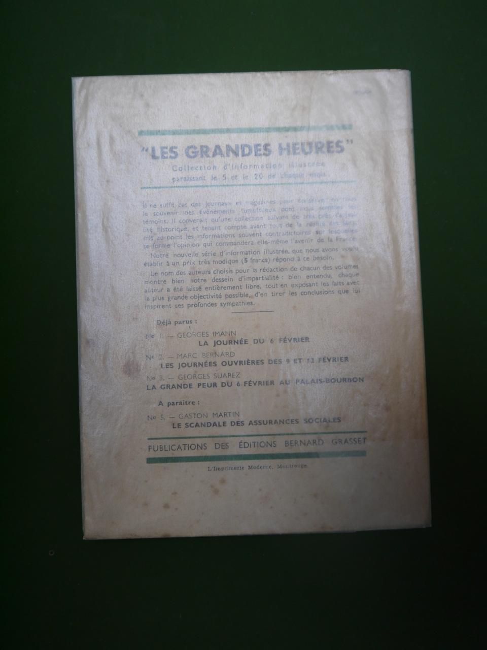 Dans la collection « Les grandes heures » de Grasset – « collection d’information illustrée paraissant le 5 et le 20 de chaque mois »!