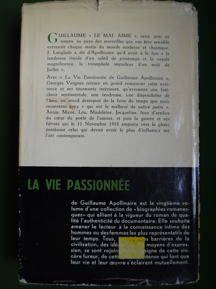 La vie passionnée de Guillaume Apollinaire, Georges Vergnes, éditions Gérard & Co, 1958