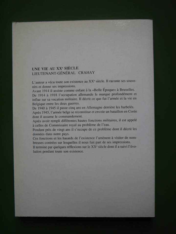Une vie au XXème siècle, lieutenant-général Crahay, JM Collet, 1988