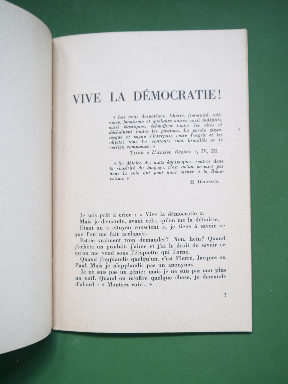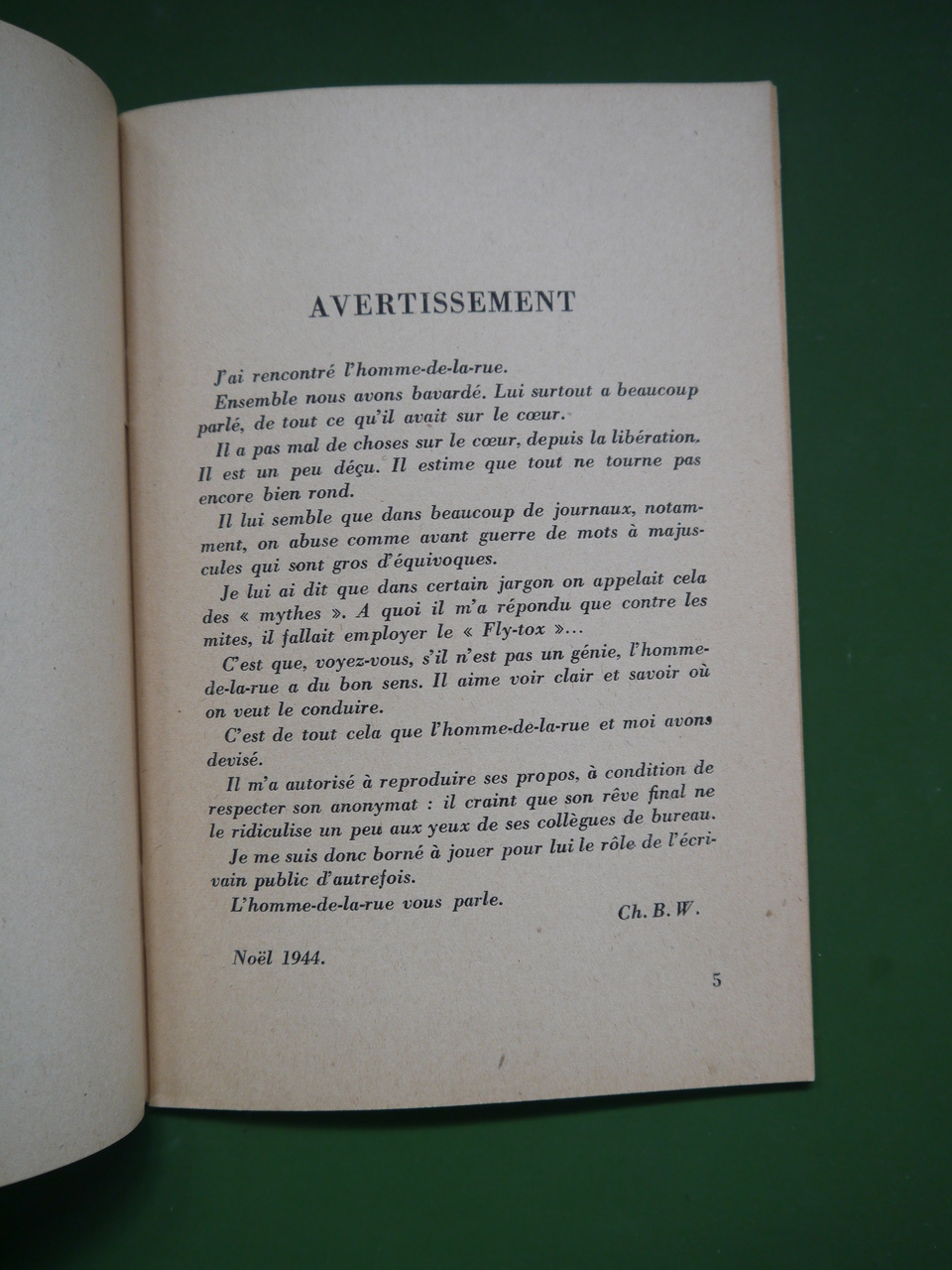 « Quelques modestes réflexions soumises avec respect par l’homme-de-la-rue à Messieurs les politiciens ». 45 pages.