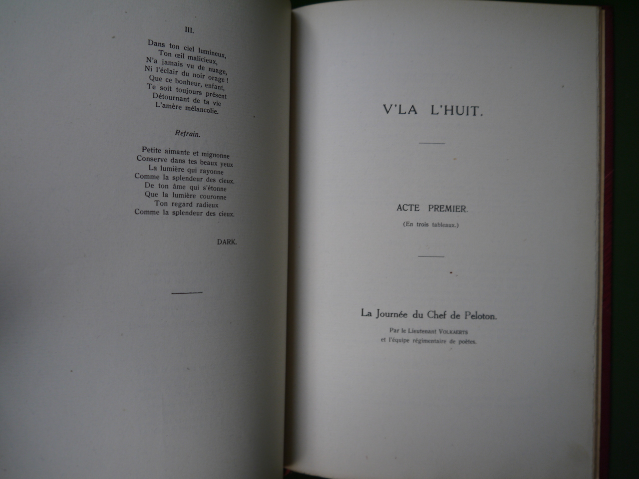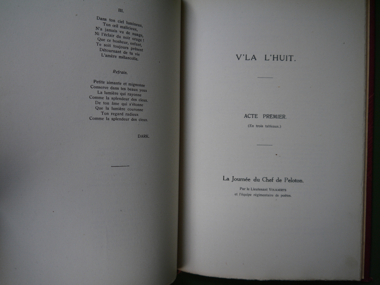 Textes des spectacles organisés par et pour le 8ème régiment de ligne à la caserne prince Baudouin.