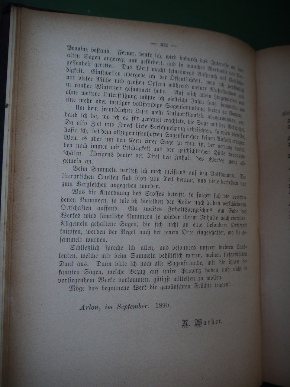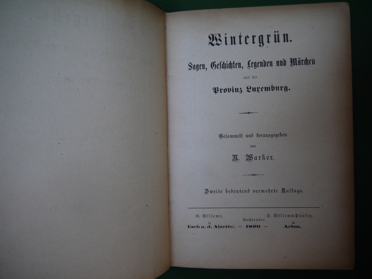 « Sagen, Geschichten, Legenden und Märchen aus der Provinz Luxemburg »: un recueil de légendes collectées et retranscrites par Nicolas Warker en allemand arlonnais.